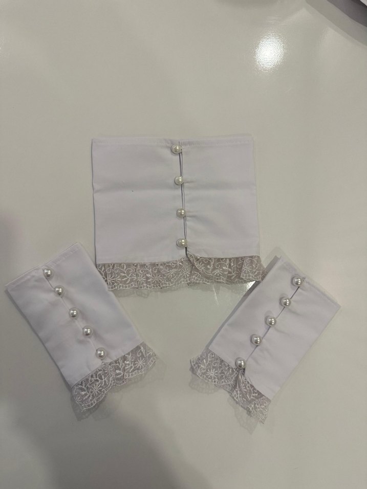İşlemeli dantel ve inci düğmeli beyaz kadın kol düğmeleri, geleneksel tarzda düğün için uygundur. Boyunluk ve kolluk