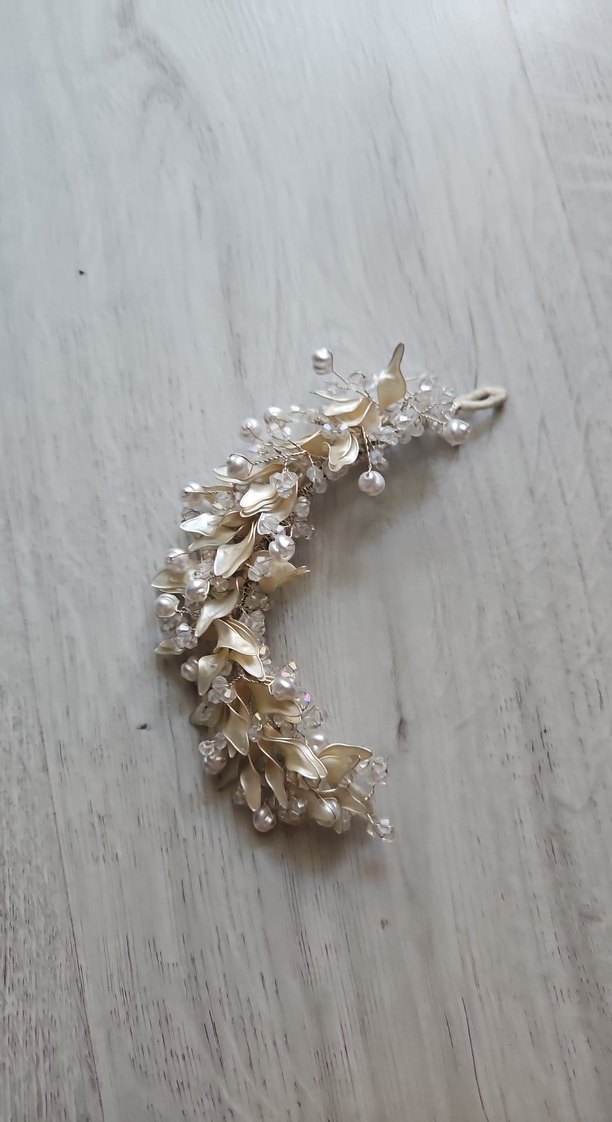 İnci işlemeli, beyaz renkli, bohem tarzda, düğünlere uygun klasik şıklıkta saç aksesuarı. ✨