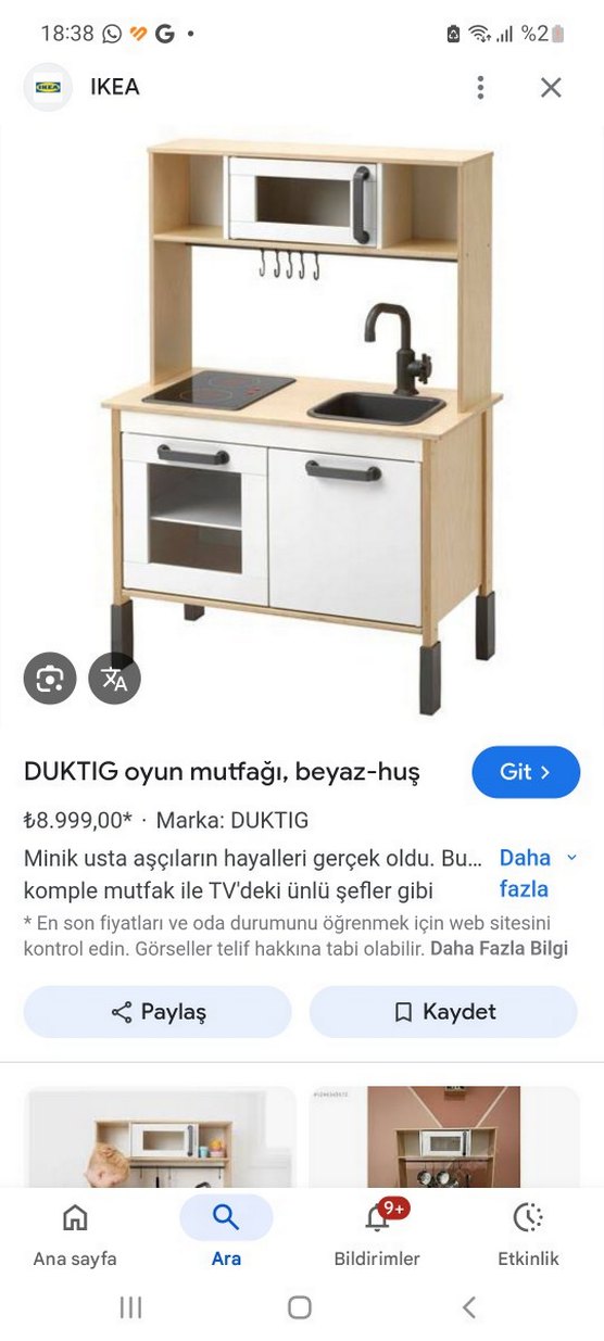 DUKTIG oyun mutfağı, ocak, lavabo ve dolaplarla tam donanımlı. Açık renkli ahşap ve beyaz tasarımıyla modern bir görünüm sunar.
