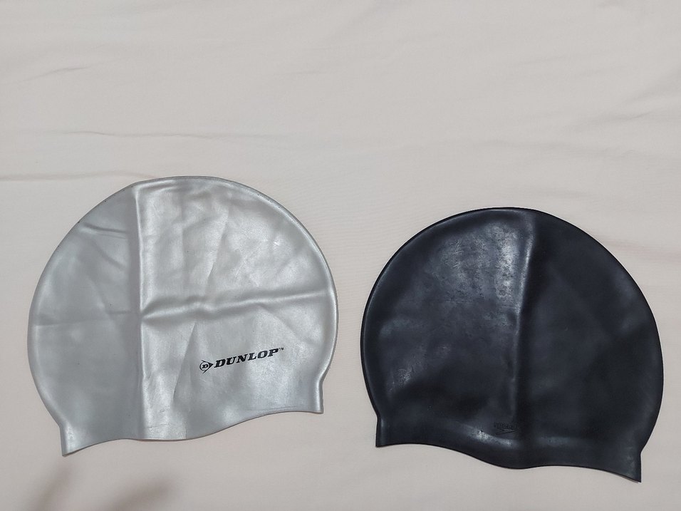 siyah ve gri renklerde, Velcro detaylı, minimal ve sportif görünümlü yüzme bonesi. Rahat ve uyumlu tasarım sunar. gri dunlop markasi siyah speedo