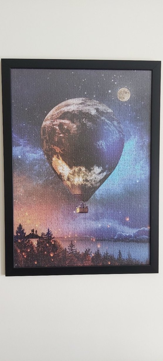 Dünya Balonlu Gökyüzü Puzzle Yapılmış Asılmaya Hazır Çerçeveli