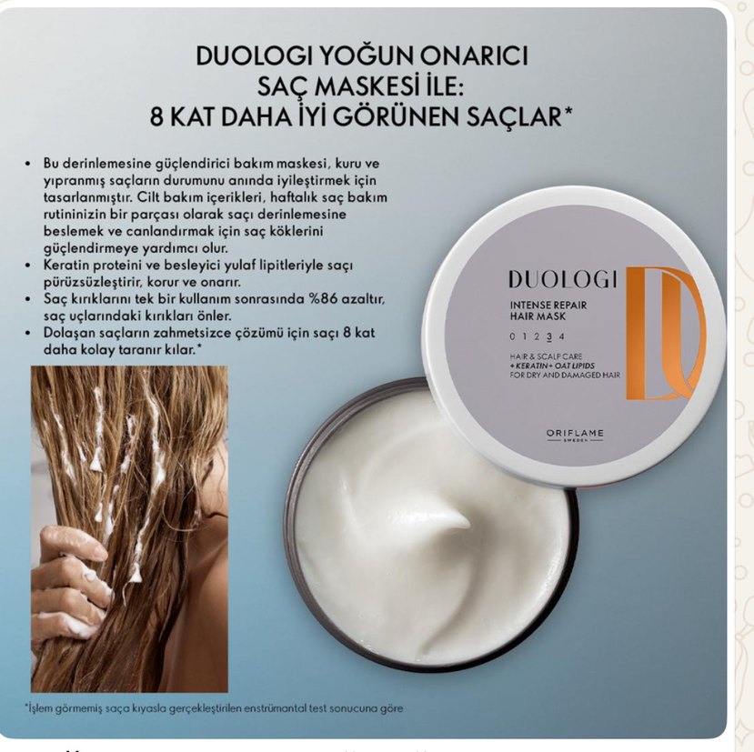YOĞUN ONARIM, GÜÇLÜ SAÇLAR Kuru ve yıpranmış saçlar için derinlemesine bakım. Keratin ve yulaf lipitleri ile saçı besler, onarır ve yumuşatır. Bu derinlemesine güçlendirici bakım maskesi, kuru ve yıpranmış saçların durumunu anında iyileştirmek için tasarlanmıştır. Cilt bakım içerikleri, haftalık saç bakım rutininizin bir parçası olarak saçı derinlemesine beslemek ve canlandırmak için saç köklerini güçlendirmeye yardımcı olur. Keratin proteini ve besleyici yulaf lipitleriyle saçı pürüzsüzleştirir, korur ve onarır. Saç kırıklarını tek bir kullanım sonrasında %86 azaltır, saç uçlarındaki kırıkları önler.Dolaşan saçların zahmetsizce çözümü için saçı 8 kat daha kolay taranır kılar.* Yoğun Onarıcı Saç Maskesi, protein ve besleyici yulaf lipitleriyle kuru ve zarar görmüş saçı derinlemesine güçlendirir ve anında iyileştirir. Tek kullanımdan sonra kırılmaları %86 azaltır ve saçların 8 kat daha iyi görünmesini sağlar. ♀️