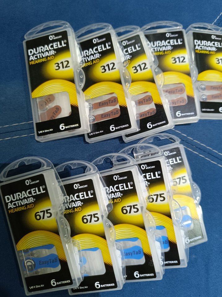 Duracell işitme cihazı pilleri, 312 ve numaralarda, her pakette 6 adet EasyTab kolay kullanımlı pil mevcuttur. Sarı ambalajda. beş paket fiyatı
