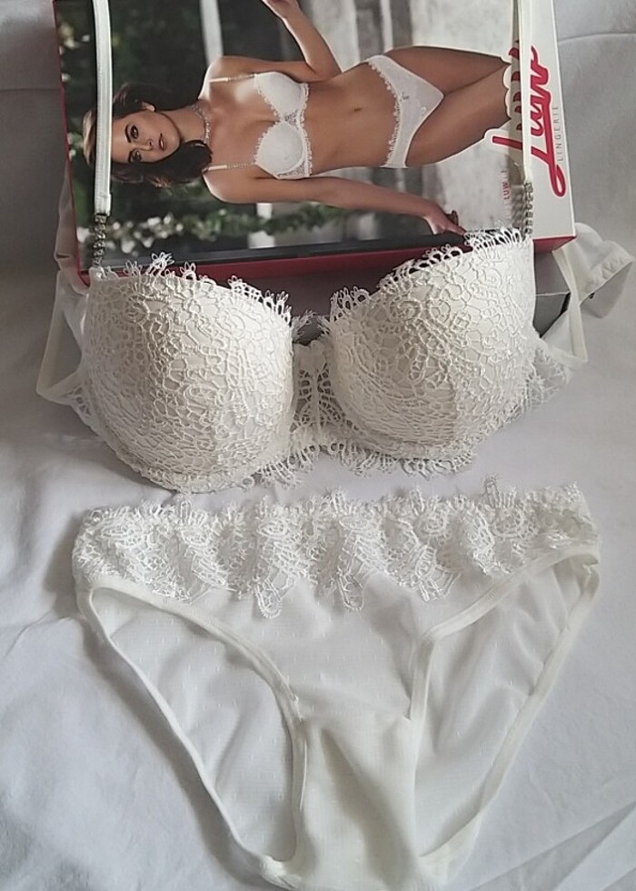 Hiç giyilmedi denenmedi bile . Yanlışlıkla beden yanlış gelmesi üzerine iade edilemedi elde kaldı . Sıfırdır . Ekru renk Üst dolgulu 90 , alt beden M/38 beden dantelli ve tüllü yapıya sahip gönül rahatlığıyla alabilirsiniz.