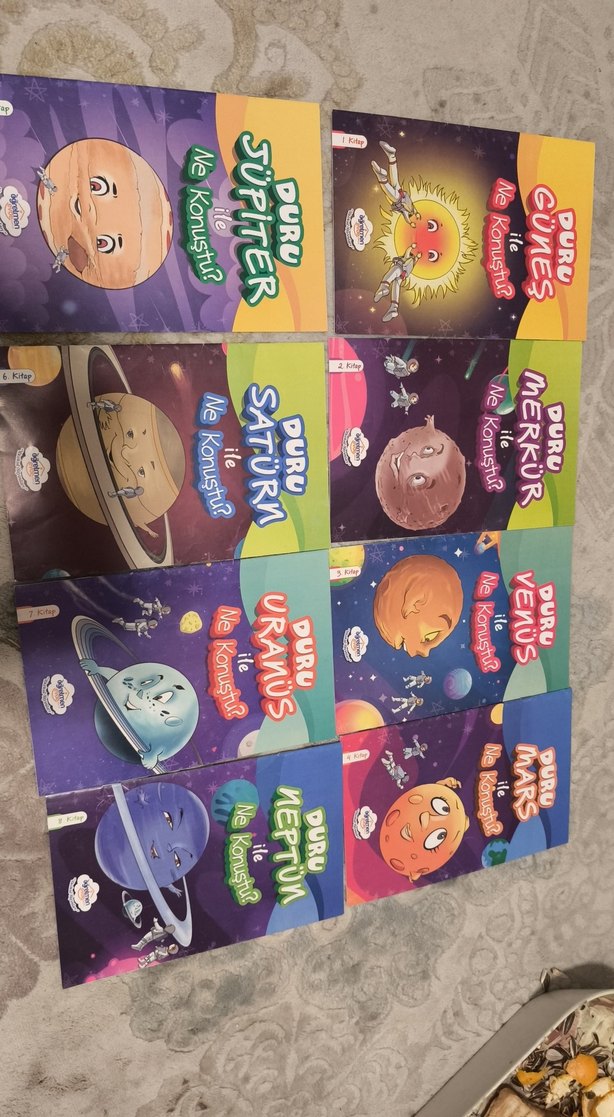 Jüpiter, Venüs, Mars gibi gezegenlerin ne konuştuklarını anlatan çocuk kitapları seti.