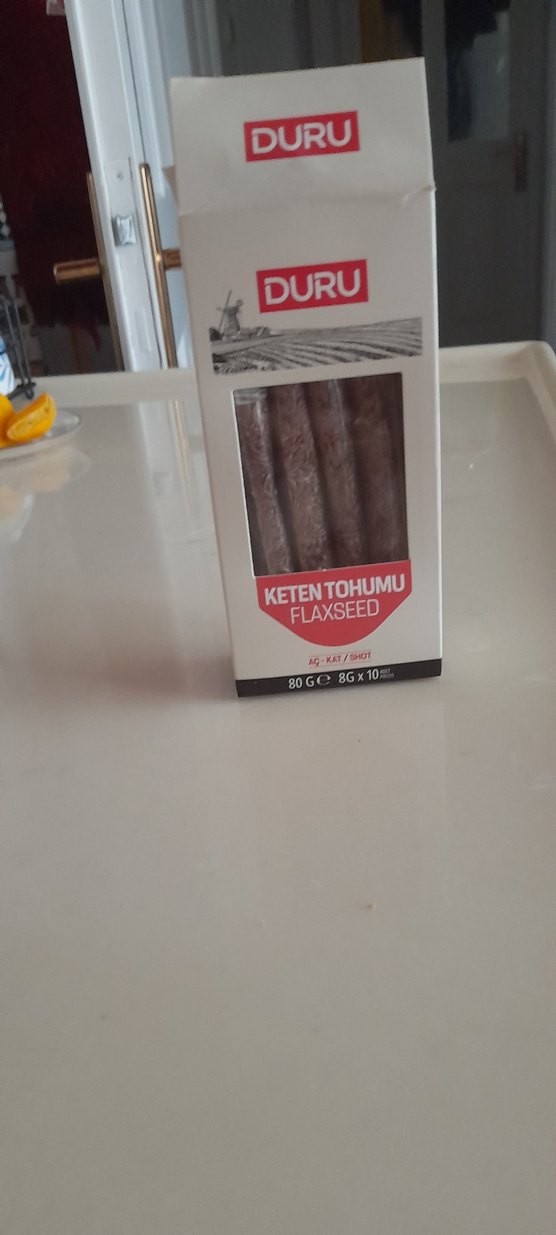 Duru keten tohumu çubukları, doğal keten tohumu içerir. 80g, 10 adet çubuk paketinde sunulur.