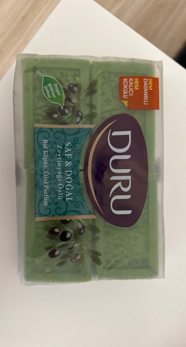 Duru Saf & Doğal zeytinyağlı sabun, dayanıklı kullanımı ve bol köpüğü ile özel parfüm içerir.