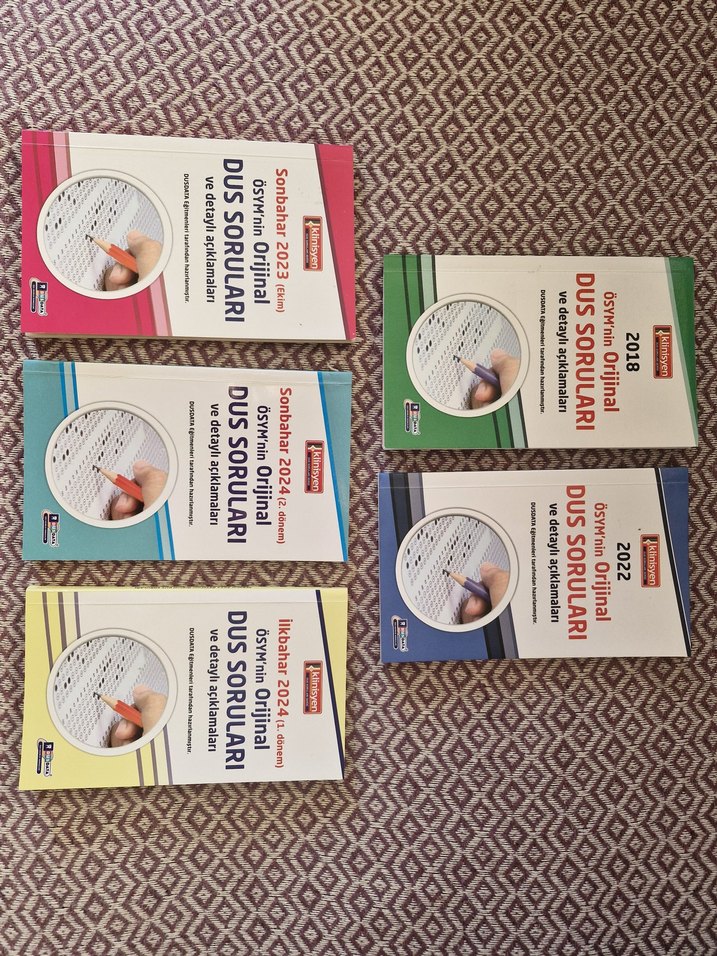 Hiç işaretleme yapılmadı .DUS sınavı orijinal soru ve cevaplarını içeren kitap seti. Dusdata yayınları . 2024 yılı olanlar 125 tl , geri kalanlar 75 tl toplu halde 475 tl . Lütfen görselleri iyi inceleyin ve merak ettiklerinizi sorun , iade kabul etmiyorum.