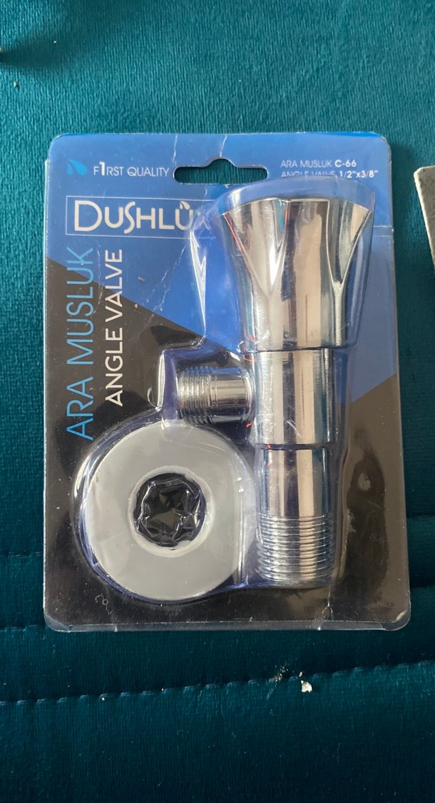 Dushlu marka gri ve mavi renkli açılı vana musluk, dayanıklı yapıda ve yuvarlak conta ile birlikte gelir taharat musluğu 2adet şeklinde gönderim yapılacaktır sıfır ürün