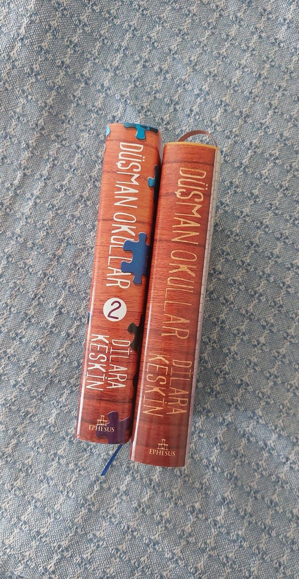 Dilara Keskin'in "Düşman Okullar" roman serisi, iki ciltten oluşuyor. Ephesus yayınevi tarafından basılmış, etkileyici kapak tasarımları bulunuyor.