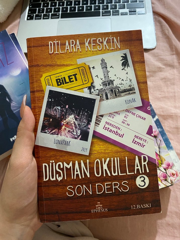Dilara Keskin'in Düşman Okullar Son Ders 3 kitabı, 12. baskı, Ephesus yayınevi, seyahat ve şehir temalı kapak ile.