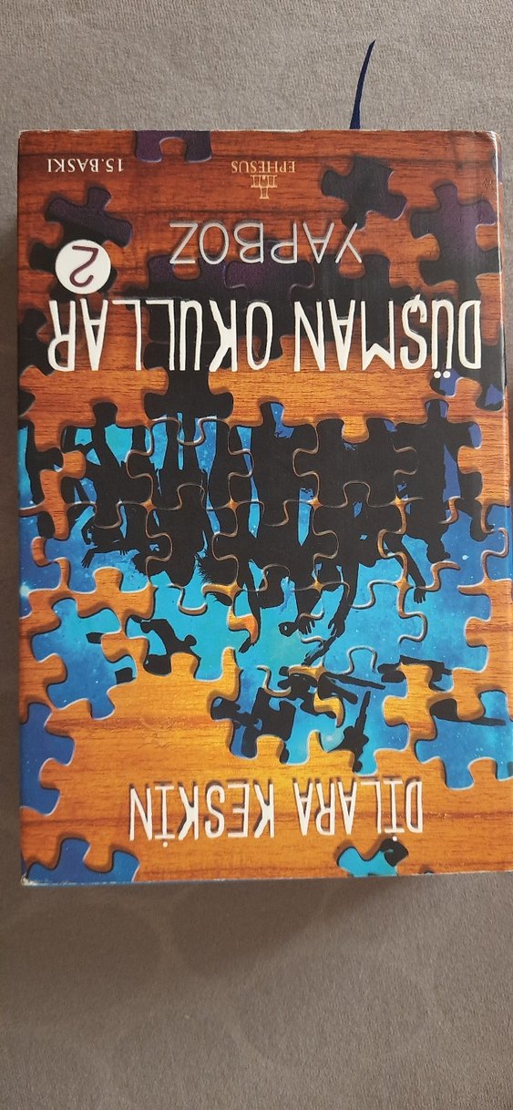 Dil Ara Keskin'in "Düşman Okulları 2" adlı romanı, karmaşık ve ilgi çekici hikayeleri simgeleyen yapboz temalı kapağa sahip. Gizem ve gerilim dolu bir eser.