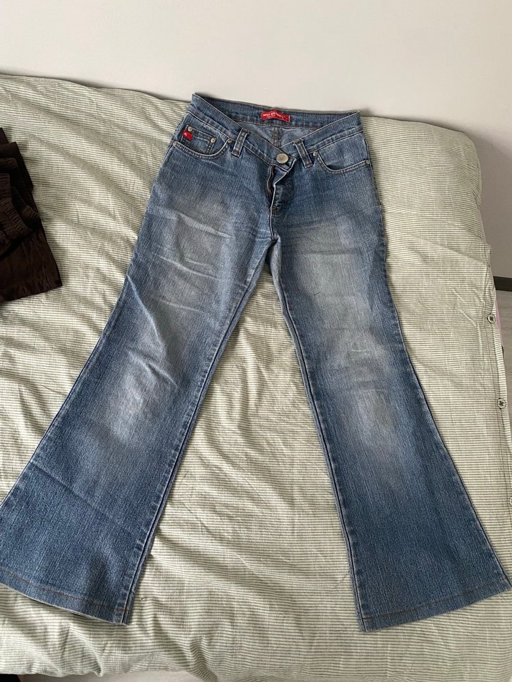 s-m bedene olur, ben kombinleyemedim, ikinci el almıştım hiç giymedim. ikinci fotoda da biraz izi var ama çok belli olmuyor. paçaları uzun değil kısa bilekte. son fotoda üstte duruşu var
