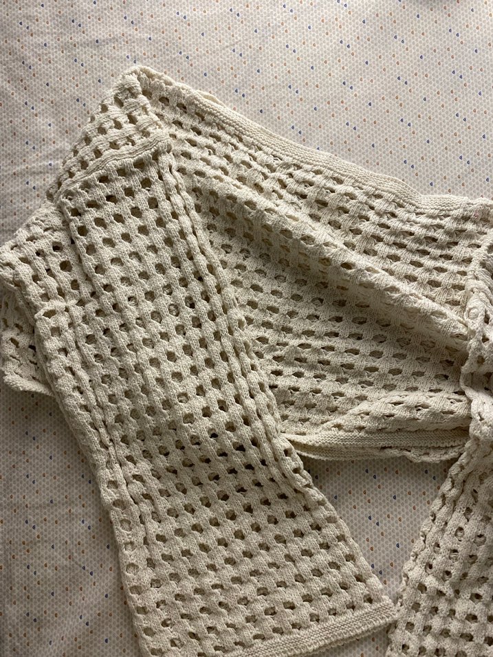 Bej renkli, örgü dokulu kadın triko bluz, salaş kesim ve kayık yaka ile rahat bir kullanım sunar. Askılı kolları ve bohem tarzıyla günlük kullanıma uygundur.