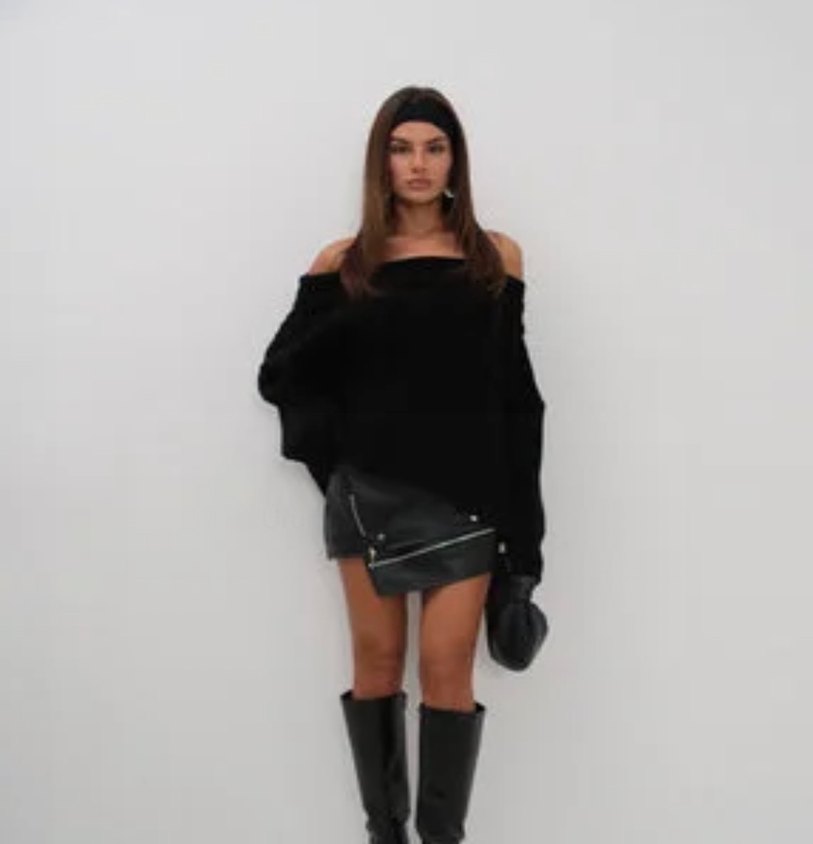 Düşük omuz siyah bol kazak