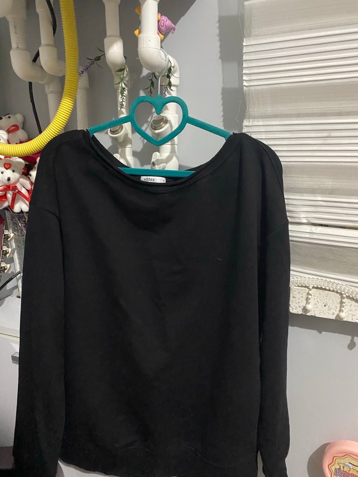 Pamuk kumaştan üretilmiş, siyah, bisiklet yaka ve uzun kollu, bol kesim sweatshirt. Minimalist ve rahat tarzıyla günlük kullanıma uygundur.