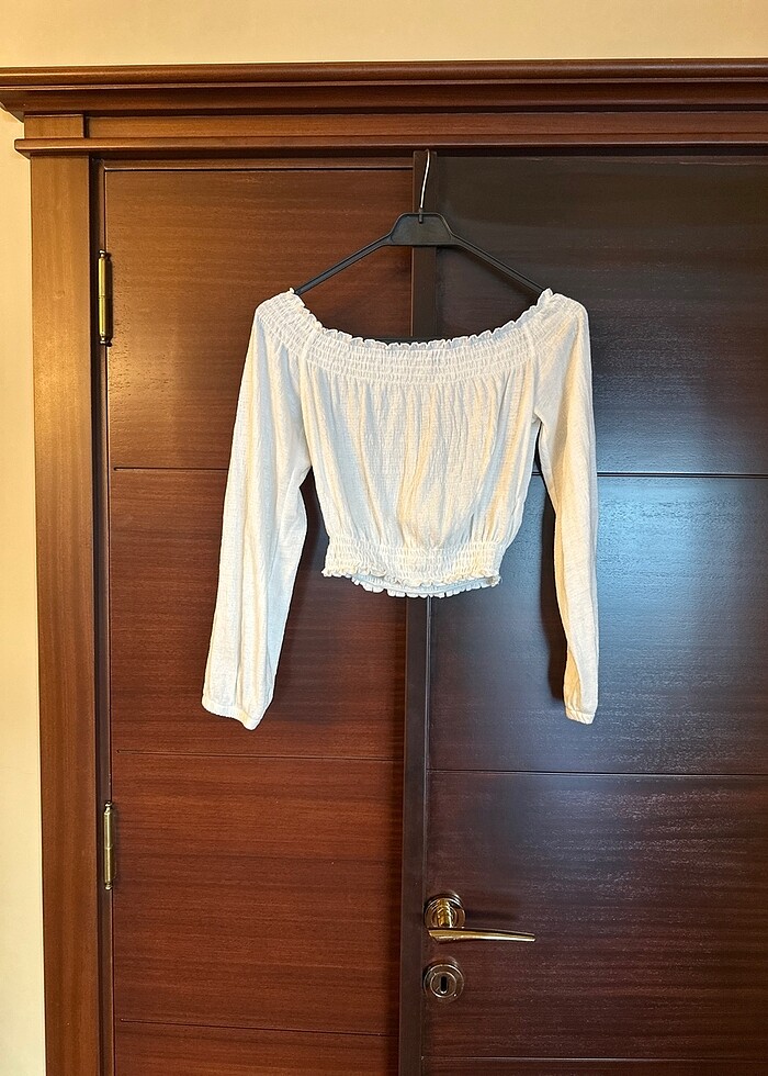 Düşük omuz H&M marka XS beden beli ve omuzu lastikli bluz