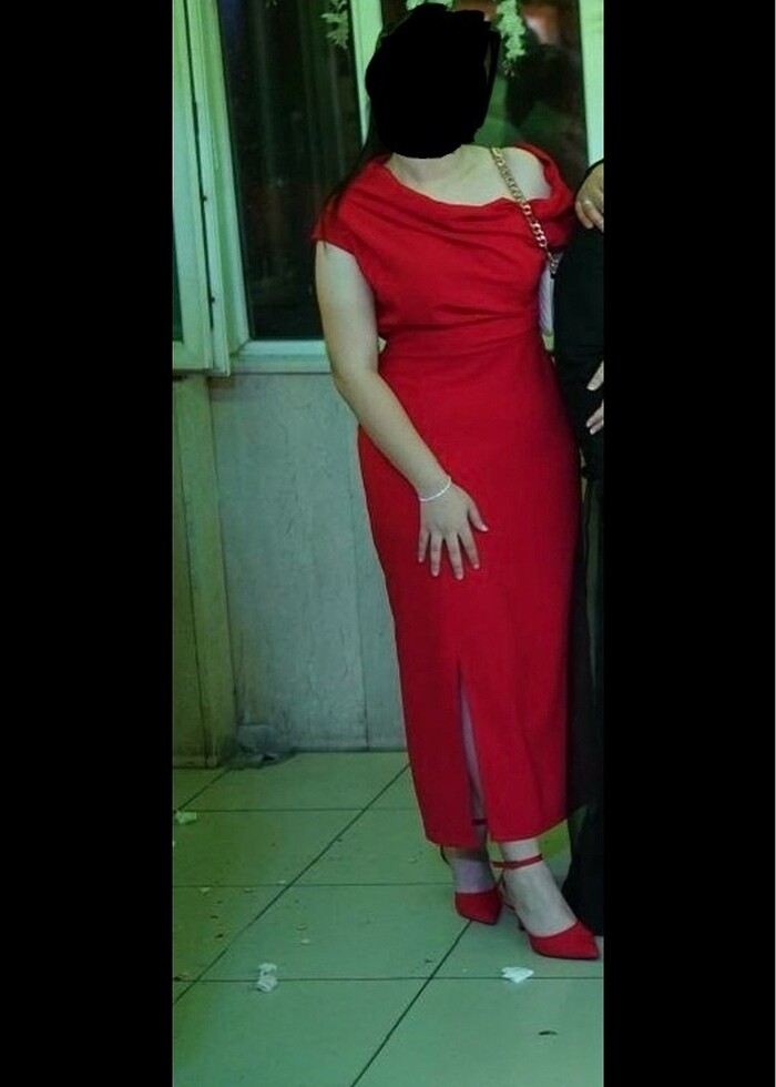 Sadece bir kere düğünde giyildi hiçbir sorunu yoktur düşük omuzlu yırtmaçlı büzgülü çok şık bir abiye elbise