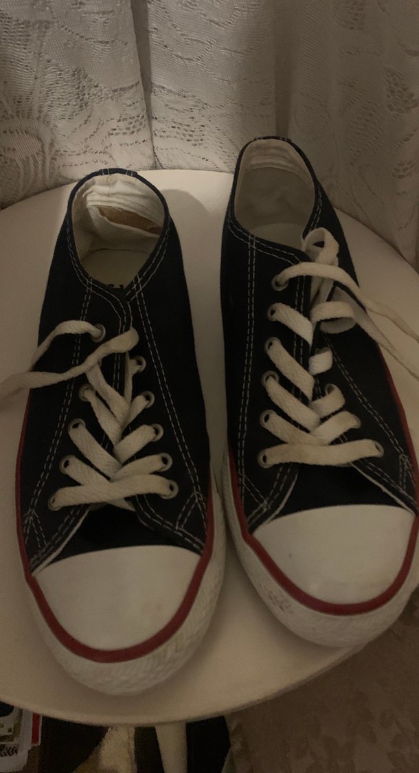 Düşük topuklu, bağcıklı ve dayanıklı kauçuk malzemeden üretilmiş koyu renkli kadın spor ayakkabısı. Günlük kullanıma uygundur. kusuru fotografta gozukuyor o yuzden ucuz tuttum bir ya da iki kere kullanildi
