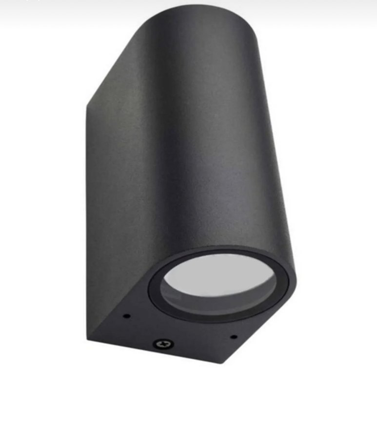 Dış mekanlar için siyah, silindirik tasarımlı duvar lambası, odaklanmış aydınlatma sağlar.