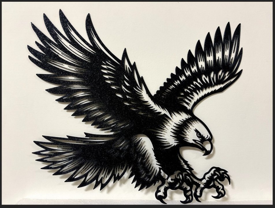 Kanatları ve pençeleri detaylı kartal figürü. Dinamik bir pozda tasarlanmıştır. dekoratif duvar süsü kartal . 22×19×0.6cm ölçülerindedir. istenilen renkte üretilir. farklı ebat için lütfen sorunuz.