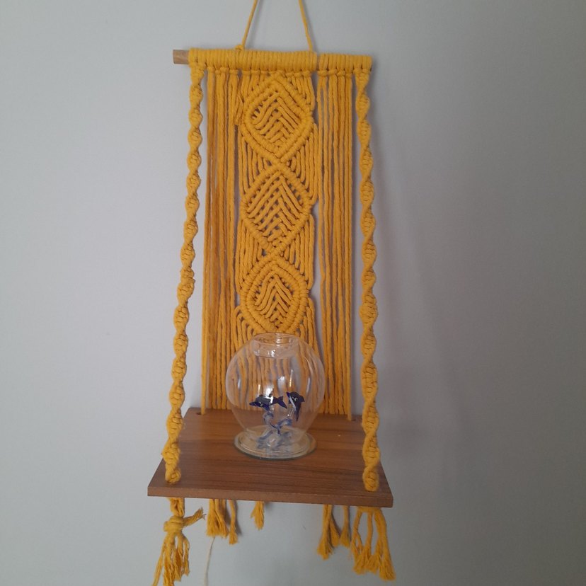 makrome duvar rafı derinlik 27 cm, en 29 cm, yükseklik 39 cm, kendi el emeğimdir