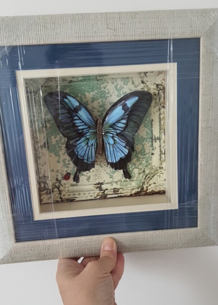 Ürün hiç kullanılmamış kabartmalı mavi kelebek üstü cam