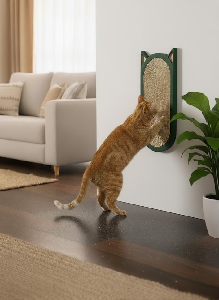 Kedi kulaklı tasarıma sahip 18 mm mdfden beyaz duvara monte edilebilir kedi tırmalama tahtası iç kısmı jüt ip ile döşenmiş kutu içerisinde askı aparatı bulunmaktadır 53cmx25cm genişliğinde