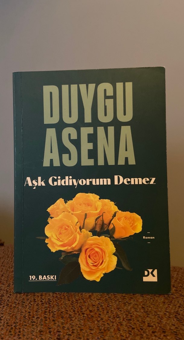 Duygu Asena'nın "Aşk Gidiyorum Demez" adlı romanı, 19. baskısı ile sarı güllerin yer aldığı kapağa sahip.