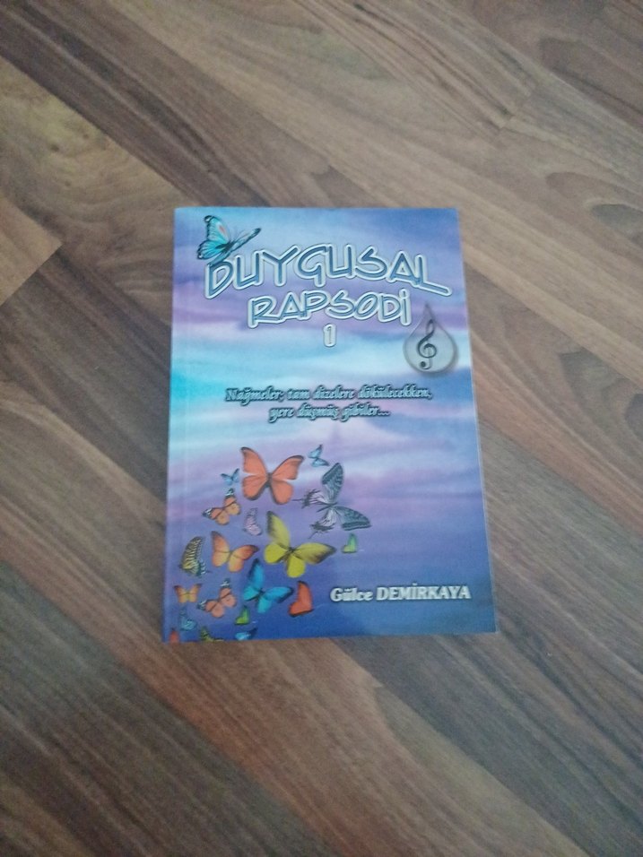 Duygusal Rapsodi 1, Gülce Demirkaya'nın kaleminden duygusal şiirlerin yer aldığı bir kitap, kapakta kelebek figürleri bulunuyor.