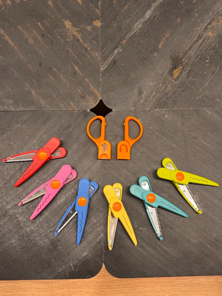 Farklı kesim desenlerine sahip, renkli okul etkinlik makasları seti, yaratıcı kesim için uygundur. ✂️ 6 adet ucu bulunan duyu makası diye de geçen şekilgeç makas #makas #kırtasiye #şekil #hobi #şekilgeç #duyu #kağıt