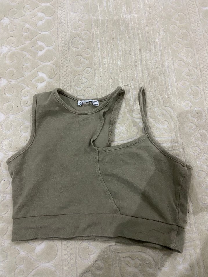 Tek tarafı askısız, diğer tarafı kolsuz, dar kesim crop top.