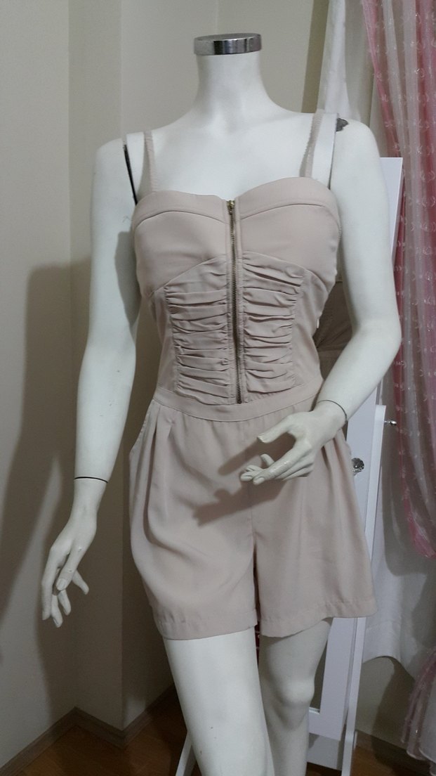 Bej renkli, straplez kısa tulum, pile detaylı ve ön fermuarlı. Kolsuz ve sentetik kumaştan, sokak modasına uygun. Ürünlerim sıfır etiketlidir. Butiğimi kapattığım için buradan daha uygun fiyata satıyorum. lade kabul etmiyorum.