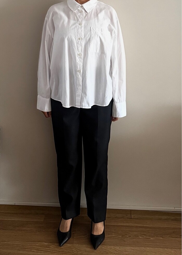 Klasik düz geniş model pamuklu gömlek temizdir üzerinde bi sorunu yoktur