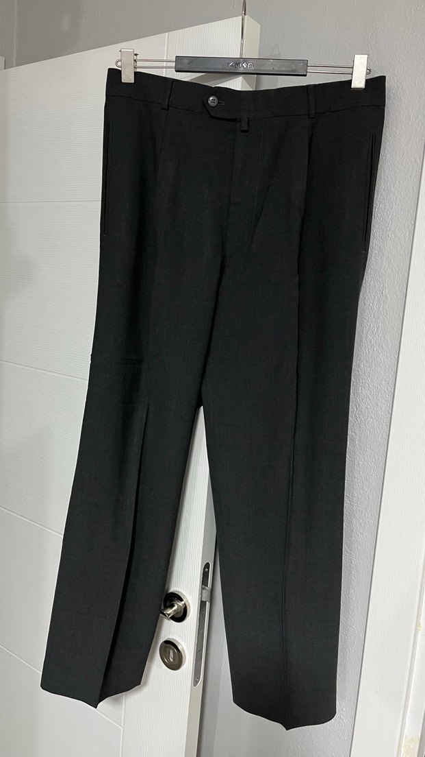Koyu gri pilili ve düz desenli erkek ofis, klasik ve rahat kesimle iş ortamına uygun.