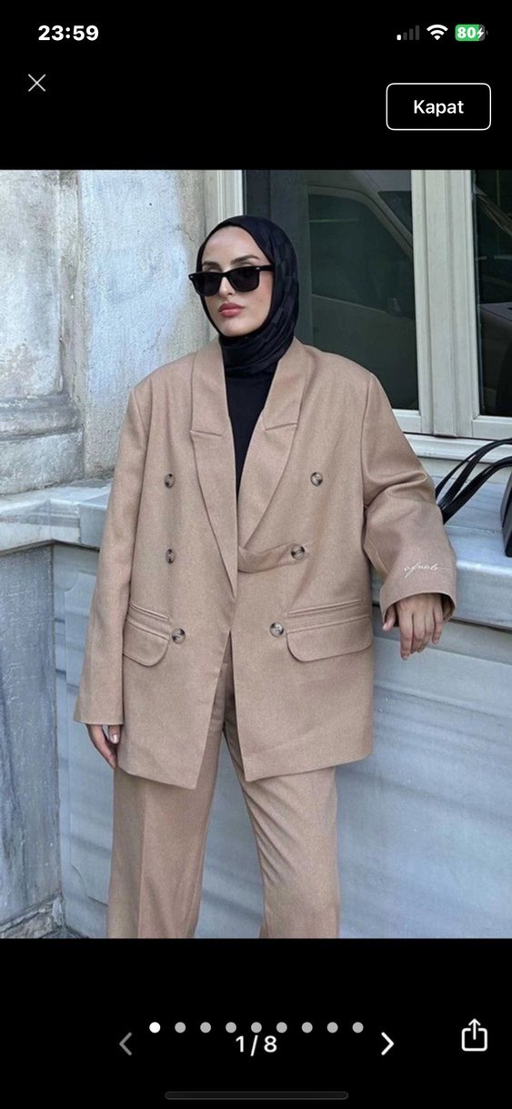 Camel renginde, düz kesim ve normal boyda kadın blazer. İpek gibi kumaştan, uzun kollu ve yakalı, günlük ve iş stiline uygun. ✨