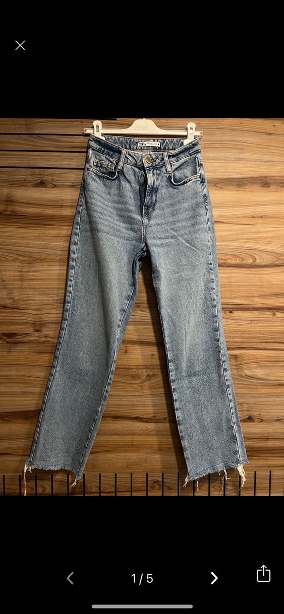 Regular fit, düz kesim kot pantolon. Mavi renkte ve şık bir görünüm sunar. Uçları kesik detaylıdır.