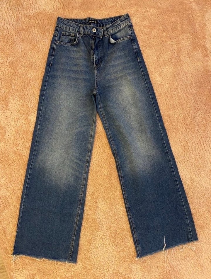 Parlak tonunda, düz kesim ve midi boy kot pantolon, sade desensiz yapısıyla zahmetsiz şıklık sunar.