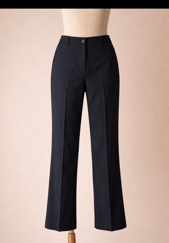 Düz kesim, pileli kumaş pantolon, ipeksi dokulu ve midi boyda. Ofis ve iş ortamları için uygun, koyu bej renkte, normcore tarzda günlük şıklık sunar. Boy bir metre bel 80 cm kalın kanvars kumaş hiç ğiyilmedi siyah renk