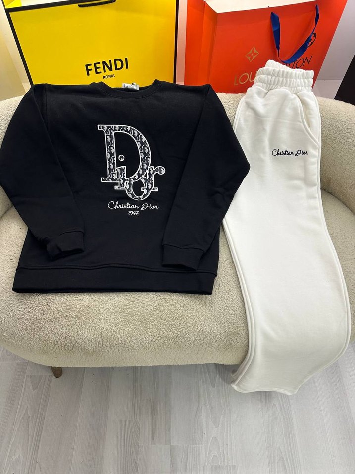 Düz Kesim Siyah Sweatshirt Beyaz Eşofman Altı CHRİSTİAN DİOR