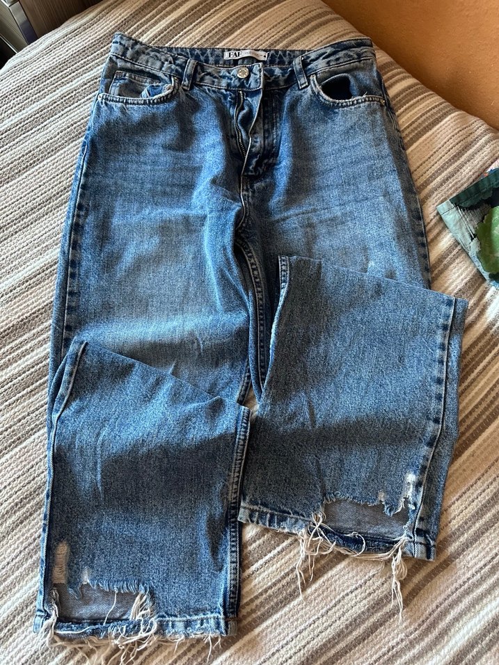Düz kesim Yüksel bel paça detaylı jean pantolon