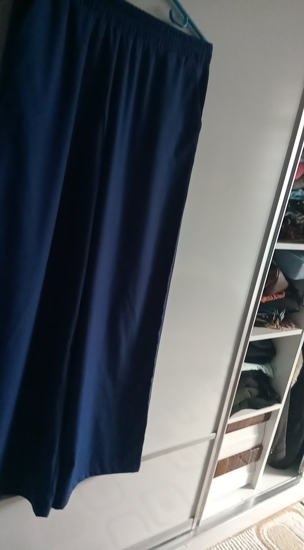 Düz lacivert renkte, sade ve temiz bir görünüm sağlayan pantolon. Bazı ışıklarda rengi açık görünüyor. aslında saks mavisi. HİÇ giyilmedi.
