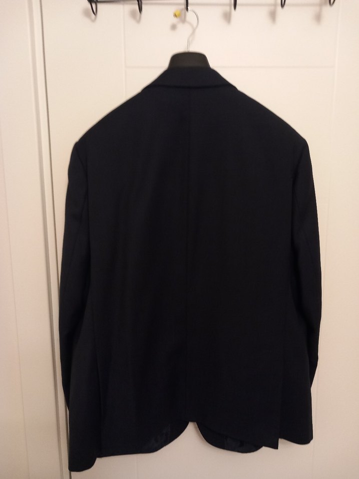 Düz lacivert renkte, düğmeli, uzun kollu, klasik kesim erkek takım ceketi. Ofis ve iş ortamları için uygundur. Midi boyda ve yakası kesiklidir. ️