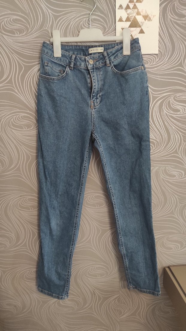 Düz mavi denim kumaştan yapılmış, midi boy ve regular fit kadın pantolon. Günlük sokak stili için rahat ve şık bir tercih.