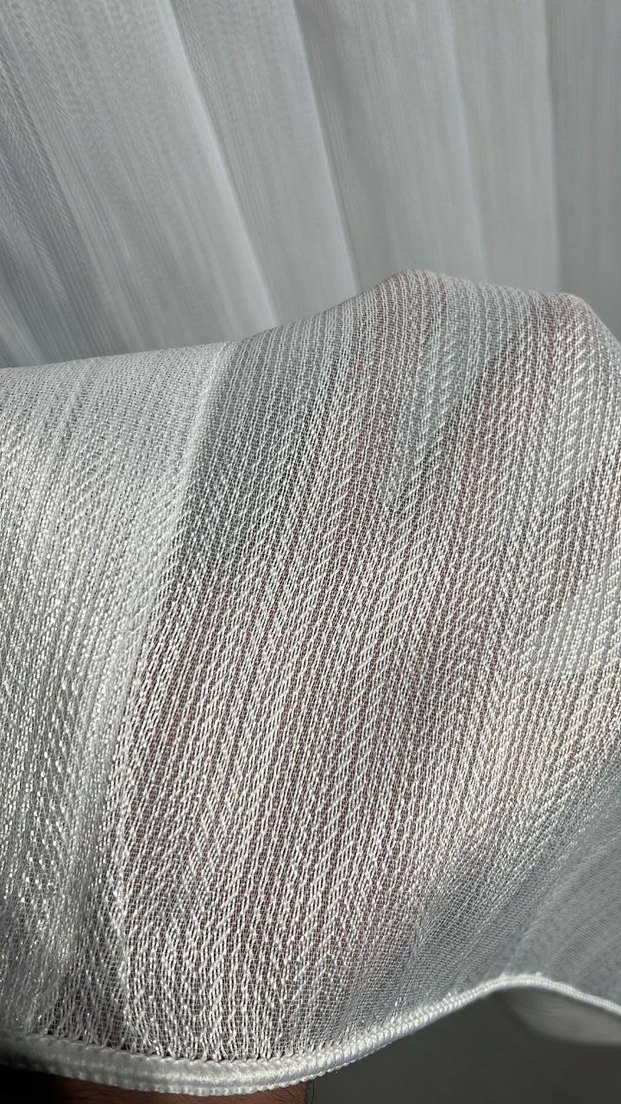 Modern tarzda, desen içermeyen, gri renkte ve yumuşak dokulu tül perde.