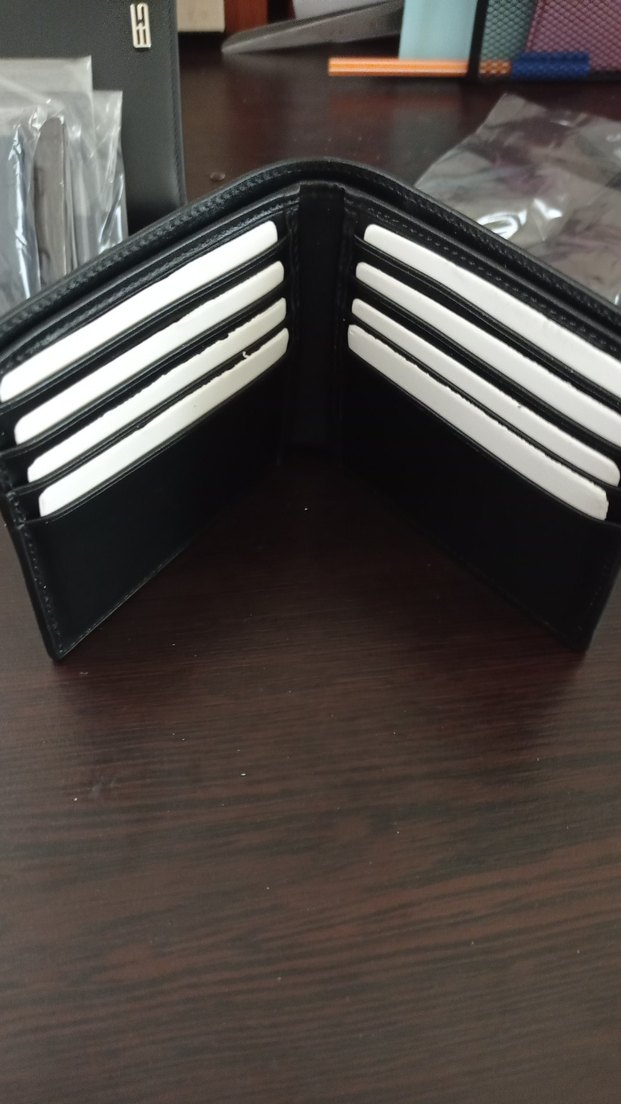 Düz siyah deri erkek cüzdan, çoklu kart bölmeleriyle düzen sağlar. Hakiki deri (kutuyla gönderilecek)