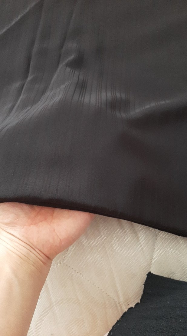 Düz siyah renkte, yumuşak ve koyu dokulu hafif çizgili kumaş tercihen pantolon şort etek elbide nasıl isterseniz öyle deyerlendirebilirsiniz ölçü vercem boyu 4mt boyu genişliyi 1.44cm tiril tiril bir kumaş.