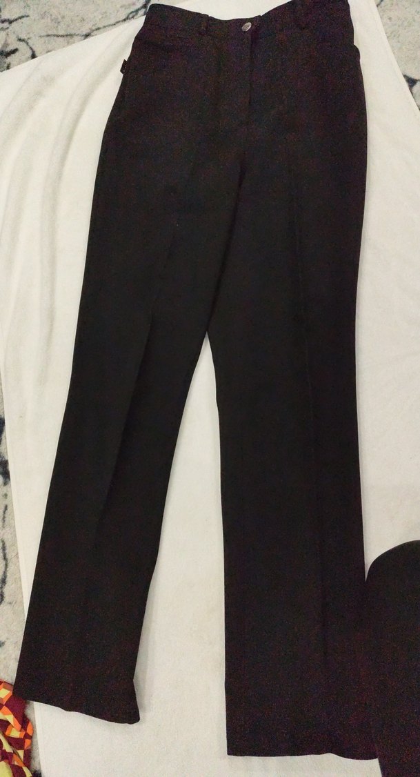 Düz siyah kumaş pantolon, normal boy midi kesim ve rahat oturan kalıpla ofis şıklığı sağlar. Sentetik dokusu konfor sunar. esnek kumaş