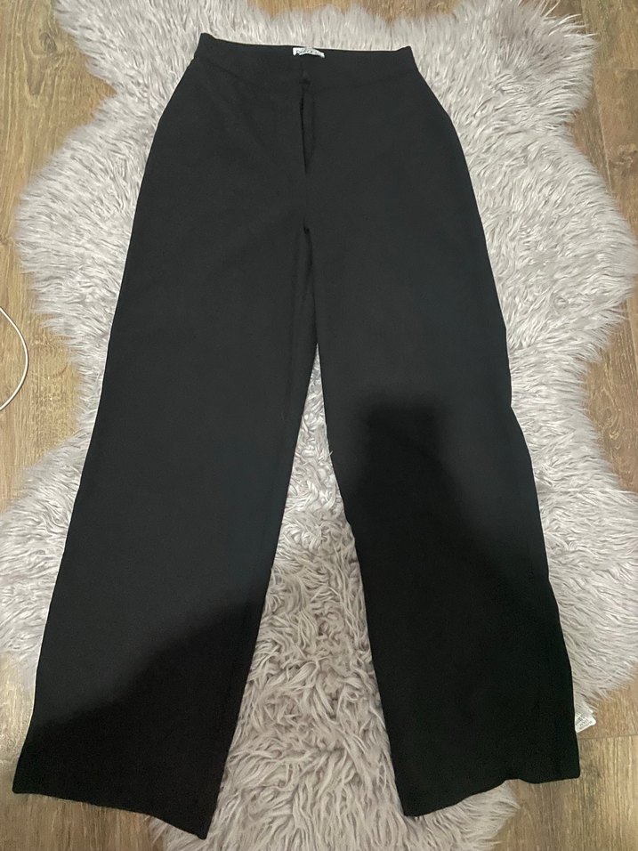 Düz siyah ,kadın kumaş pantolon. Düz desensiz, sentetik kumaştan üretilmiş, günlük kullanıma uygun şık bir model. 1 kere giyildi kusuru yok.