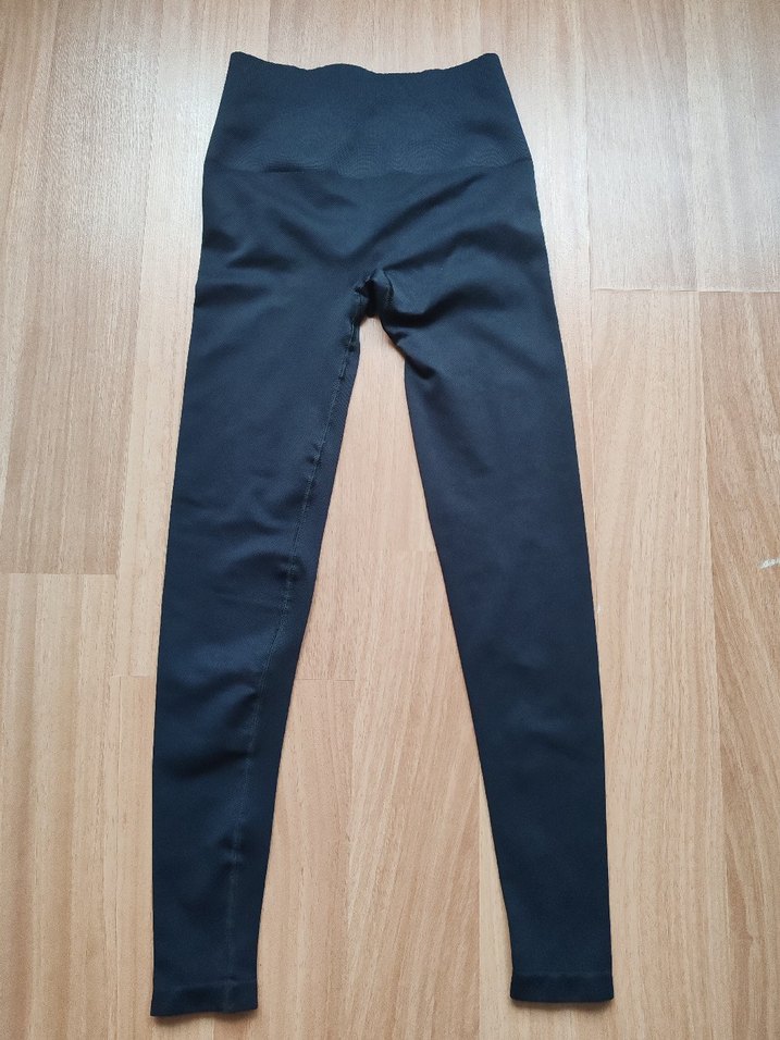 Düz siyah, yüksek bel kadın tayt. Spor ve günlük kullanıma uygun, şık ve rahat bir görünüm sağlar.